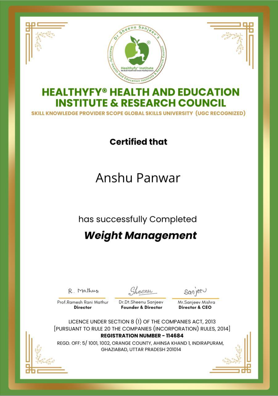 About Nutritionist Anshu Panwar